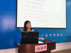 吴校长最后强调,当前学校发展正处于“逆水行舟、不进则退”的重要时间窗口期,要借助这次“两学一做”学习教育,使我校全体党员职工积极秉承“团结、民主、执行力”这三项核心价值要求,紧紧围绕“一个中心、两个基地”的办学理想,推进学校各项事业健康持续发展。